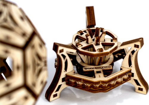 UPOZORNENIE: Na zostavenie je treba ulamovací nôž, nožnice, brúsny papier a sviečku z vosku (nie je súčasťou výrobku). Pre správne fungovanie a bezproblémovú prevádzku je potrebné nápravy a ozubené kolieska navoskovať. Rozmer zloženého puzzle cca 15,4 x 11,4 x 11,4 cm