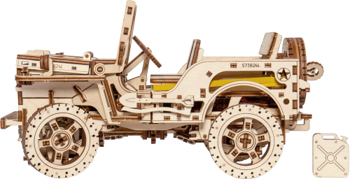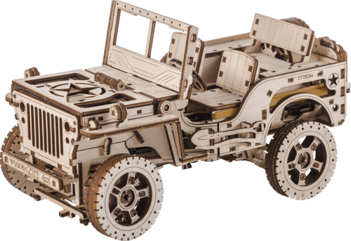 Naše 3D puzzle 4×4 slávneho amerického terénneho vozidla. Tento model je po zostavení zložitým mechanizmom s jemnými detailmi. Je to predchodca dnešných SUV, vozidlo s mužným charakterom! Počas druhej svetovej vojny zahájila americká automobilka Willys-Overland Motors výrobu svojho legendárneho armádneho džípu Willys MB. V roku 1941 bola zahájená sériová výroba tohto vojenského úžitkového vozidla, ktoré bolo okamžite vo veľkom množstve nasadené spojeneckými silami. Do histórie sa zapísali ako spoľahlivé, obratné a funkčné. Bol to skutočne „technický prielom“ a skutočný „vojnový motor“. Dnes sú džíp aj jeho nástupca, SUV, drahé terénne vozidlá určené pre odolných jedincov. Prekonávajú prekážky, prach, cesty a nebezpečenstvo. Model s vlastnosťami skutočného vozidla: