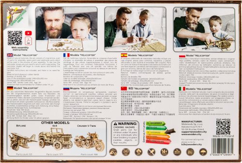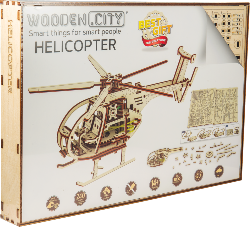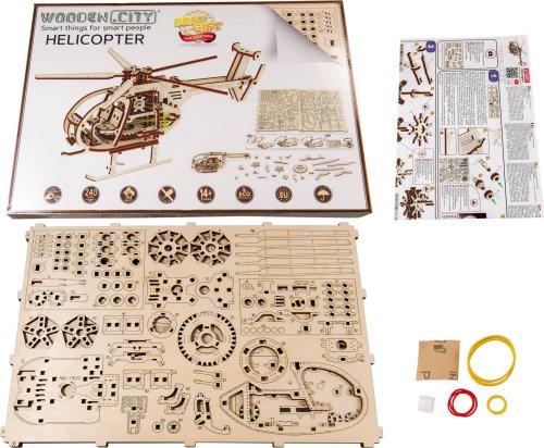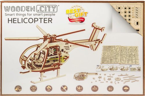 Drevená mechanická stavebnica vojenského vrtuľníka na vás čaká! Vďaka jedinečnému dizajnu a prekvapivým detailom tohto modelu bude vaše trávenie času plné zábavy a skvelých emócií. Vlastnosti modelu: - lopatky vrtuľníka sa otáča - naťahovanie špeciálnym kľúčom - model je kópiou skutočného vrtuľníka 3D puzzle WOODEN CITY Helicopter bude najlepším darčekom pre každého milovníka letectva. Obtiažnosť: stredná 3 z 5 Orientačná doba na zloženie: 4 hodiny Mierka: 1:30 Drevené 3D puzzle WOODEN CITY sú detailne prepracované funkčné mechanické modely, ktoré sa skladajú bez lepidla alebo náradia. Sú vyrobené z ekologických drevených materiálov - kvalitné brezové preglejky. S mechanickými drevenými puzzle WOODEN CITY zažijete hodiny zábavy pri skladaní a spoznáte prevody, gumičkové motory, ozubené kolieska a ďalšie súčiastky z bezprostrednej blízkosti.
