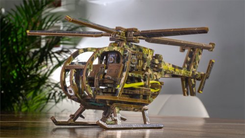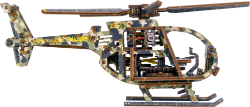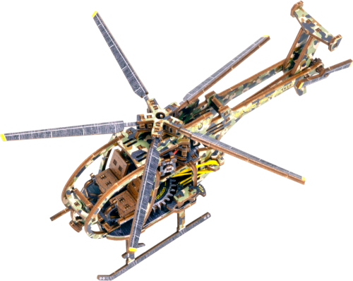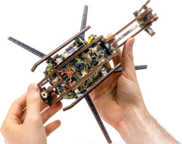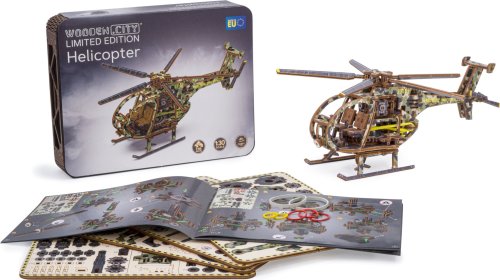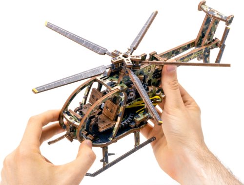 Drevená mechanická stavebnica vojenského vrtuľníka na vás čaká! Vďaka jedinečnému dizajnu a prekvapivým detailom tohto modelu bude vaše trávenie času plné zábavy a skvelých emócií. Vlastnosti modelu: - výrazné farebné prvky vďaka vysoko presnej UV tlači, - drevená krabička slúži ako podstavec, - zberateľská edícia. 3D puzzle WOODEN CITY Helicopter bude najlepším darčekom pre každého milovníka letectva. Obtiažnosť: stredná 3 z 5 Orientačná doba na zloženie: 4 hodiny Mierka: 1:30 Drevené 3D puzzle WOODEN CITY sú detailne prepracované funkčné mechanické modely, ktoré sa skladajú bez lepidla alebo náradia. Sú vyrobené z ekologických drevených materiálov - kvalitné brezové preglejky. S mechanickými drevenými puzzle WOODEN CITY zažijete hodiny zábavy pri skladaní a spoznáte prevody, gumičkové motory, ozubené kolieska a ďalšie súčiastky z bezprostrednej blízkosti.