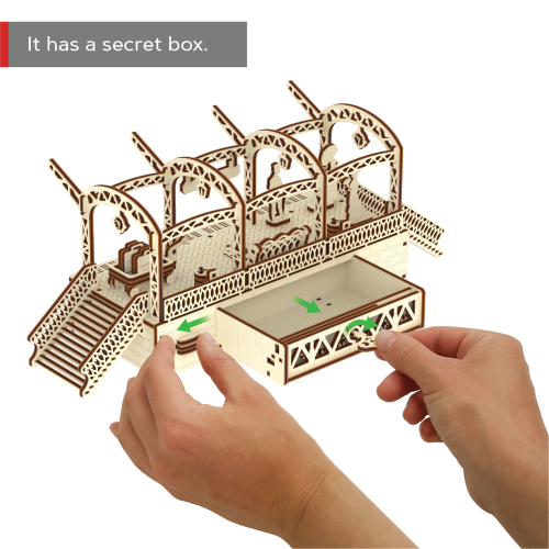 Poskladajte drevené 3D puzzle vo forme modelu železničnej stanice a pripravte sa na príchod expresných lokomotív z rôznych kútov sveta. Pamätáte si na stanicu 9,3,4 z Harryho Pottera? Naša stanica je takmer rovnaká, ale reálnejšia. Po hraní sa s touto kúzelnou drevenou stavebnicou schovajte všetky malé dieliky do tajnej krabičky. - otváracia priehradka na drobné predmety - figúrky cestujúcich s kuframi - nádražné hodiny