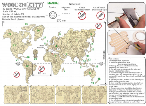 prekrásna dekorácia nabádajúca k vymaľovaniu prehlbuje záujem dieťaťa o prírodu a zemepis súčasťou balenia je obrázkový návod na rozmiestnenie a obojstranná lepiaca páska vyrobené v EÚ z kvalitnej brezovej preglejky