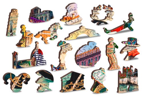 s unikátne tvarovanými dielikmi predstavujúce známe stavby, predmety alebo zvieratá podľa témy motívu vyššia obtiažnosť pri menšom počte dielikov - skladanie puzzle s rôznotvarými dielikmi je náročnejšie obojstranné puzzle 2v1 - z jednej strany je obrázok, z druhej opakujúci sa vzor na skladanie podľa tvaru hladkej hrany bez triesok vďaka precíznemu laserovému spracovaniu vyrobené z pevnej drevovláknitej HDF dosky o sile 3-4mm vo vnútri balenia je samostatná predloha na skladanie EKO Friendly 100% bez plastových obalov - puzzle je v papierovom sáčku vo vnútri papierovej krabičky vhodný darček pre akúkoľvek príležitosť
