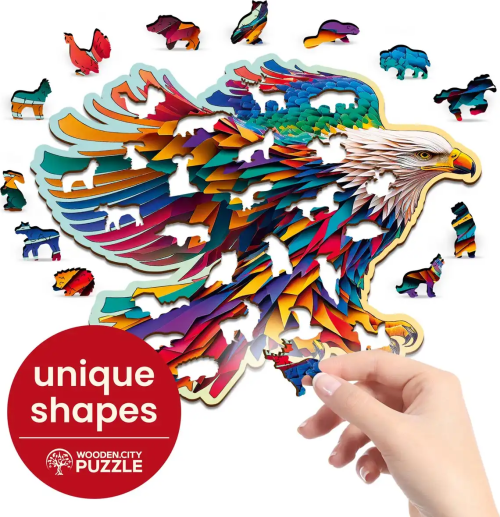 Laserom vyrezávané drevené puzzle WOODEN CITY so svojimi špeciálne tvarovanými dielikmi je neskutočne zábavné. Časť dielikov je vyrobená v tvare zvierat, ktorých výsledný efekt umocňujú laserom zvýraznené detaily. Tieto dieliky môžu samostatne stáť ako drobné figúrky. Skladanie puzzle s rôznorodými dielikmi je ťažšie a predstavuje väčšiu výzvu, než skladanie klasického puzzle. Značka WOODEN CITY okrem unikátneho konceptu puzzle nezabúda na ekológiu, u týchto výrobkov preto nenájdete žiadne plastové obaly.
