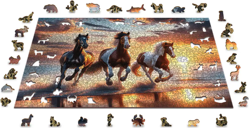 s unikátne tvarovanými dielikmi v tvare zvierat vyššia obtiažnosť pri menšom počte dielikov - skladanie puzzle s rôznotvarými dielikmi je náročnejšie hladké hrany bez triesok vďaka precíznemu laserovému spracovaniu vyrobené z pevnej drevovláknitej HDF dosky s hrúbkou 3-4mm vo vnútri balenia akúkoľvek príležitosť