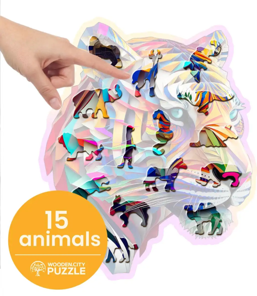Laserom vyrezávané drevené puzzle WOODEN CITY so svojimi špeciálne tvarovanými dielikmi je neskutočne zábavné. Časť dielikov je vyrobená v tvare zvierat, ktorých výsledný efekt umocňujú laserom zvýraznené detaily. Tieto dieliky môžu samostatne stáť ako drobné figúrky. Skladanie puzzle s rôznorodými dielikmi je ťažšie a predstavuje väčšiu výzvu, než skladanie klasického puzzle. Značka WOODEN CITY okrem unikátneho konceptu puzzle nezabúda na ekológiu, u týchto výrobkov preto nenájdete žiadne plastové obaly.