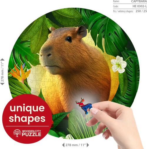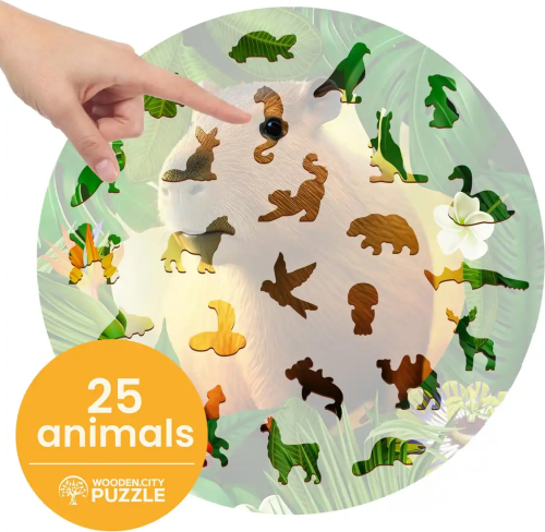 Laserom vyrezávané drevené puzzle WOODEN CITY so svojimi špeciálne tvarovanými dielikmi je neskutočne zábavné. Časť dielikov je vyrobená v tvare zvierat, ktorých výsledný efekt umocňujú laserom zvýraznené detaily. Tieto dieliky môžu samostatne stáť ako drobné figúrky. Skladanie puzzle s rôznorodými dielikmi je ťažšie a predstavuje väčšiu výzvu, než skladanie klasického puzzle. Značka WOODEN CITY okrem unikátneho konceptu puzzle nezabúda na ekológiu, u týchto výrobkov preto nenájdete žiadne plastové obaly.
