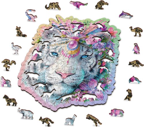 Laserom vyrezávané drevené puzzle WOODEN CITY so svojimi špeciálne tvarovanými dielikmi je neskutočne zábavné. Časť dielikov je vyrobená v tvare zvierat, ktorých výsledný efekt umocňujú laserom zvýraznené detaily. Tieto dieliky môžu samostatne stáť ako drobné figúrky. Skladanie puzzle s rôznorodými dielikmi je ťažšie a predstavuje väčšiu výzvu, než skladanie klasického puzzle. Značka WOODEN CITY okrem unikátneho konceptu puzzle nezabúda na ekológiu, u týchto výrobkov preto nenájdete žiadne plastové obaly.