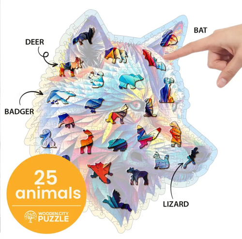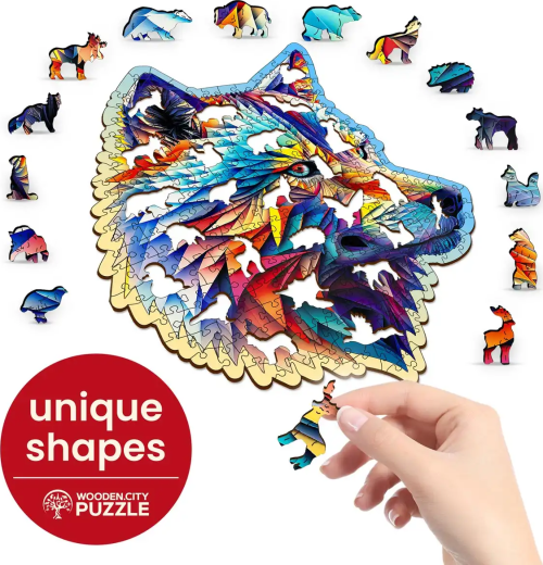 Laserom vyrezávané drevené puzzle WOODEN CITY so svojimi špeciálne tvarovanými dielikmi je neskutočne zábavné. Časť dielikov je vyrobená v tvare zvierat, ktorých výsledný efekt umocňujú laserom zvýraznené detaily. Tieto dieliky môžu samostatne stáť ako drobné figúrky. Skladanie puzzle s rôznorodými dielikmi je ťažšie a predstavuje väčšiu výzvu, než skladanie klasického puzzle. Značka WOODEN CITY okrem unikátneho konceptu puzzle nezabúda na ekológiu, u týchto výrobkov preto nenájdete žiadne plastové obaly.