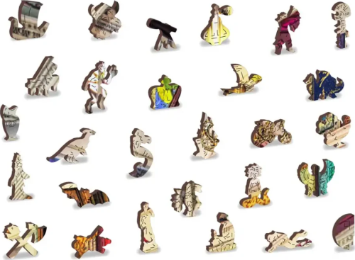 Laserom vyrezávané drevené puzzle WOODEN CITY so svojimi špeciálne tvarovanými dielikmi je neskutočne zábavné. Časť dielikov je vyrobená v tvare zvierat, stavieb alebo predmetov, ktorých výsledný efekt umocňujú laserom zvýraznené detaily. Tieto dieliky môžu samostatne stáť ako drobné figúrky. Skladanie puzzle s rôznorodými dielikmi je ťažšie a predstavuje väčšiu výzvu, než skladanie klasického puzzle. Puzzle je navyše obojstranné, skladať môžete ako podľa obrázku (lícová strana), tak podľa tvaru (rubová strana so vzorom).