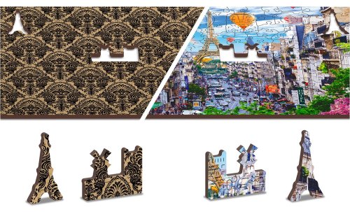 s unikátne tvarovanými dielikmi predstavujúce známe stavby, predmety alebo zvieratá podľa témy motívu vyššia obtiažnosť pri menšom počte dielikov - skladanie puzzle s rôznorodými dielikmi je náročnejšie obojstranné puzzle 2v1 - z jednej strany je obrázok, z druhej opakujúci sa vzor na skladanie podľa tvaru hladkej hrany bez triesok vďaka precíznemu laserovému spracovaniu vyrobené z pevnej drevovláknitej HDF dosky o sile 3-4mm vo vnútri balenia je samostatná predloha na skladanie EKO Friendly 100% bez plastových obalov - puzzle je v papierovom sáčku vo vnútri papierovej krabičky vhodný darček pre akúkoľvek príležitosť