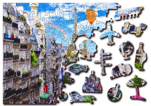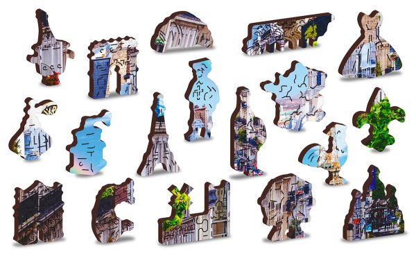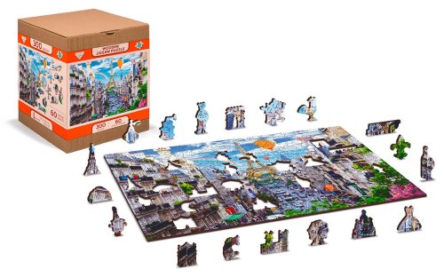 Upozornenie: Fotografie puzzle s dielikmi sú ilustratívne, môžu zobrazovať variant s odlišným počtom dielikov. Celkový počet dielikov je vždy uvedený v názve výrobku, výsledný rozmer obrázku a počet unikátne tvarovaných dielikov je uvedený v popise. Laserom vyrezávané drevené puzzle WOODEN CITY so svojimi špeciálne tvarovanými dielikmi je neskutočne zábavné. Časť dielikov je vyrobená v tvare zvierat, stavieb alebo predmetov, ktorých výsledný efekt umocňujú laserom zvýraznené detaily. Tieto dieliky môžu samostatne stáť ako drobné figúrky. Skladanie puzzle s rôznorodými dielikmi je ťažšie a predstavuje väčšiu výzvu, než skladanie klasického puzzle. Puzzle je navyše obojstranné, skladať môžete ako podľa obrázku (lícová strana), tak podľa tvaru (rubová strana so vzorom). Značka WOODEN CITY okrem unikátneho konceptu puzzle nezabúda na ekológiu, u týchto výrobkov preto nenájdete žiadne plastové obaly.