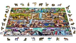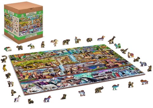 Laserom vyrezávané drevené puzzle WOODEN CITY so svojimi špeciálne tvarovanými dielikmi je neskutočne zábavné. Časť dielikov je vyrobená v tvare zvierat, stavieb alebo predmetov, ktorých výsledný efekt umocňujú laserom zvýraznené detaily. Tieto dieliky môžu samostatne stáť ako drobné figúrky. Skladanie puzzle s rôznorodými dielikmi je ťažšie a predstavuje väčšiu výzvu, než skladanie klasického puzzle. Puzzle je navyše obojstranné, skladať môžete ako podľa obrázku (lícová strana), tak podľa tvaru (rubová strana so vzorom). Značka WOODEN CITY okrem unikátneho konceptu puzzle nezabúda na ekológiu, u týchto výrobkov preto nenájdete žiadne plastové obaly.