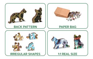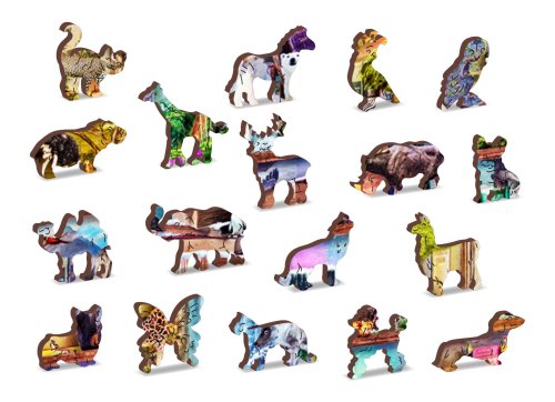 s unikátne tvarovanými dielikmi predstavujúce známe stavby, predmety alebo zvieratá podľa témy motívu vyššia obtiažnosť pri menšom počte dielikov - skladanie puzzle s rôznorodými dielikmi je náročnejšie obojstranné puzzle 2v1 - z jednej strany je obrázok, z druhej opakujúci sa vzor na skladanie podľa tvaru hladkej hrany bez triesok vďaka precíznemu laserovému spracovaniu vyrobené z pevnej drevovláknitej HDF dosky o sile 3-4mm vo vnútri balenia je samostatná predloha na skladanie EKO Friendly 100% bez plastových obalov - puzzle je v papierovom sáčku vo vnútri papierovej krabičky vhodný darček pre akúkoľvek príležitosť