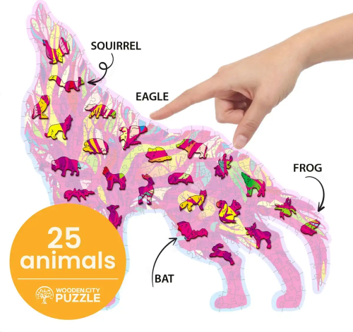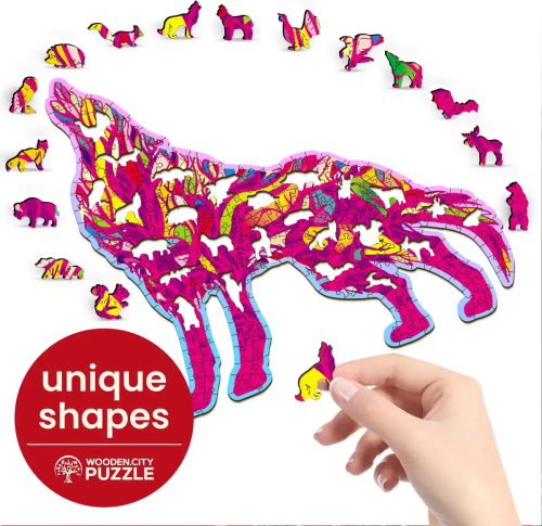 Laserom vyrezávané drevené puzzle WOODEN CITY so svojimi špeciálne tvarovanými dielikmi je neskutočne zábavné. Časť dielikov je vyrobená v tvare zvierat, ktorých výsledný efekt umocňujú laserom zvýraznené detaily. Tieto dieliky môžu samostatne stáť ako drobné figúrky. Skladanie puzzle s rôznorodými dielikmi je ťažšie a predstavuje väčšiu výzvu, než skladanie klasického puzzle. Značka WOODEN CITY okrem unikátneho konceptu puzzle nezabúda na ekológiu, u týchto výrobkov preto nenájdete žiadne plastové obaly.