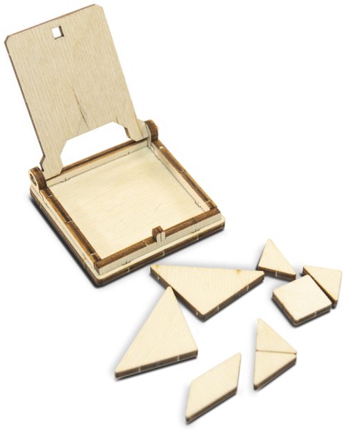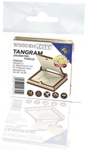 Vek: od 14 rokovRozmer zloženého puzzle cca: 6 x 6 x 1,2 cmMateriál: Drevo - preglejkaPočet dielikov: 16Drevené 3D puzzle, ktoré po zložení poslúži ako vreckový hlavolam pre jedného na skrátenie dlhej chvíle. Tangram je štvorec, ktorého história siaha až do doby pred 3000 rokmi. Je premyslene rozdelený na sedem geometrických častí, z ktorých je možné zostavovať rôzne siluety zvierat, ľudských postáv alebo vecí. Aj samotné umiestnenie tangramu do krabičky je malým hlavolamom. Tento výrobok neobsahuje predlohy, tie možno voľne nájsť na internete. rýchle zostavenie bez použitia lepidla alebo nástrojov kompaktná veľkosť, vhodná na cesty súčasťou je krabička, aby sa žiadny dielik nestratil vyrobený z kvalitnej preglejky hlavolam môžete nechať v prírodnom prevedení alebo nafarbiť (napr. fixy) vyrobený v EU