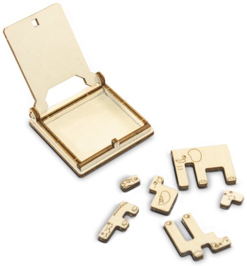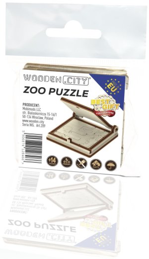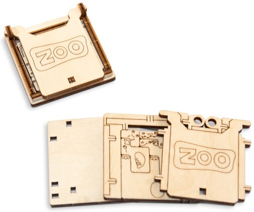 Drevené 3D puzzle, ktoré po zložení poslúži ako vreckový hlavolam pre jedného na skrátenie dlhej chvíle. Cieľom hlavolamu Zoo je usporiadať dieliky tak, aby sa všetky zmestili do vymedzeného priestoru.