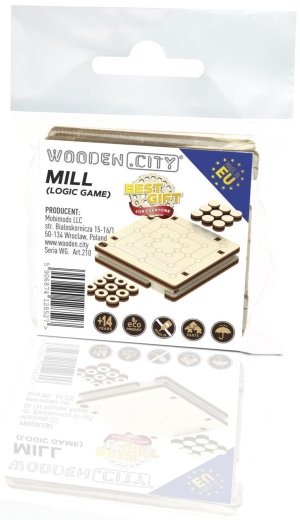 Orientačná doba na zloženie: pár minút Pravidlá hry Mlyn: Každý hráč si vezme 9 žetónov. Cieľom je postaviť čo najviac mlynov (rada 3 žetónov rovnakej farby vedľa seba). Ak sa podarí hráčovi vytvoriť mlyn, môže vyradiť z hry jeden zo súperových žetónov. Akonáhle sú všetky voľné žetóny rozmiestnené, začína druhá fáza hry. Hráči striedavo pohybujú svojimi žetónmi a snažia sa vytvárať ďalšie mlyny, aby mohli súperovi zobrať žetón. V rámci svojho ťahu musí pohnúť jedným žetónom po čiare na voľné miesto. Hra končí, pokiaľ sa jeden z hráčov nemôže pohnúť alebo mu zostali len 2 žetóny a nemôže teda vytvoriť mlyn.