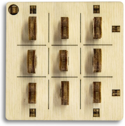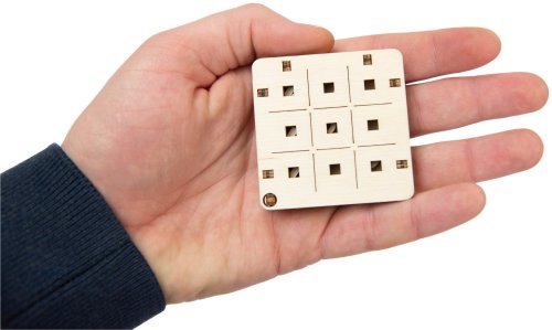 Drevené 3D puzzle, ktoré po zložení poslúži ako vrecková hra na skrátenie dlhej chvíle.