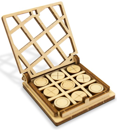 rýchle zostavenie bez použitia lepidla alebo nástrojov kompaktná veľkosť, vhodná na cesty súčasťou je krabička, aby sa žiadny dielik nestratil vyrobené z kvalitnej preglejky hru môžete nechať v prírodnom prevedení alebo nafarbiť (napr. fixky) vyrobené v EÚ vhodné ako darček