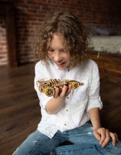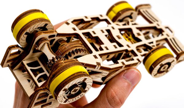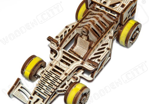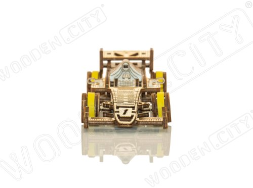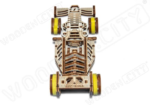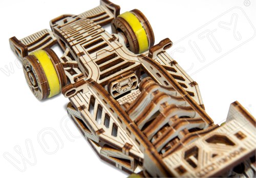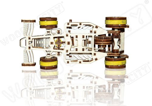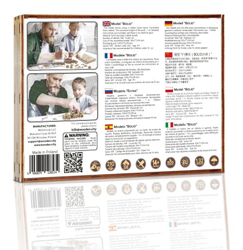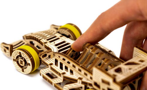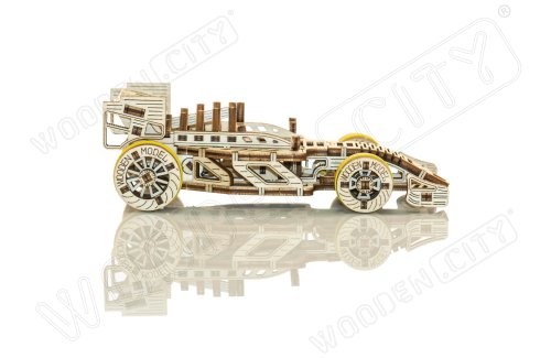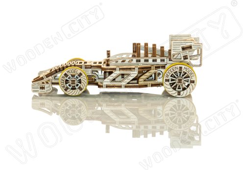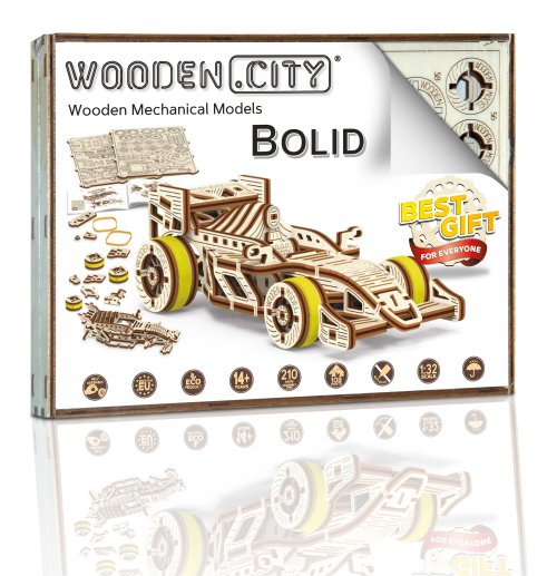 A víťazom sa stáva... Bolid! Jedna z hviezd závodných vozidiel s prednými otočnými kolesami, zotrvačníkovým mechanizmom a vratným kolesom. Model sa pohybuje pomocou gumičkového motora – maximálny dojazd na jedno natiahnutie je 45 cm. Sú športové autá vašou vášňou? Tak tento model bude skvelým doplnkom vašej zbierky. Zostavte si ho spoločne so svojim dobrým kamarátom, kúpte si ešte jedno drevené autíčko a usporiadajte si doma závod. Kto zvíťazí? Model má niekoľko detailov skutočného pretekárskeho vozidla: - sedačka pre pretekára, - pogumované kolesá, - predné otočné kolesá, - setvačníkový mechanizmus, - vratné koleso. 3D puzzle WOODEN CITY Bolid je skvelým doplnkom zbierky športových áut. Obtiažnosť: 3 z 5 (podľa rozdelenia Wooden City) Orientačná doba na zloženie: 3,5 - 4 hodiny Mierka: 1:32 Drevené 3D puzzle WOODEN CITY sú detailne prepracované funkčné mechanické modely, ktoré sa skladajú bez lepidla alebo náradia. Sú vyrobené z ekologických drevených materiálov - kvalitné brezové preglejky. S mechanickými drevenými puzzle WOODEN CITY zažijete hodiny zábavy pri skladaní a spoznáte prevody, gumičkové motory, ozubené kolieska a ďalšie súčiastky z bezprostrednej blízkosti.