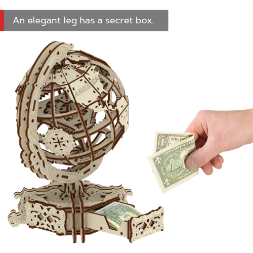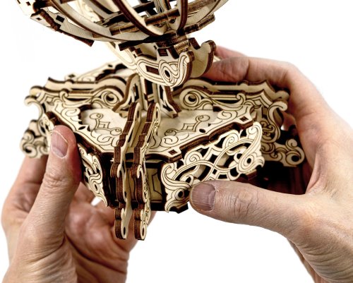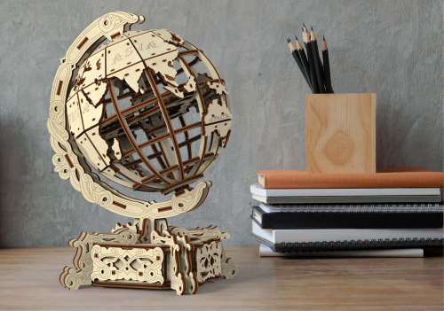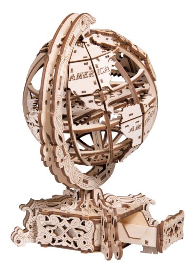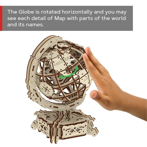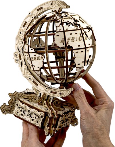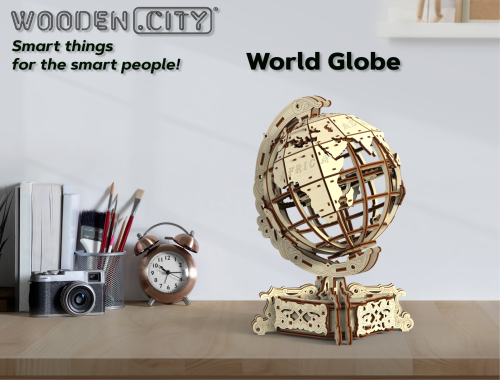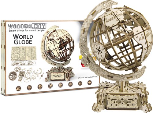 Drevené 3D puzzle Globus je neobyčajná mapa sveta, fascinujúca výzva a tiež skladačka na relaxáciu, odbúranie stresu a zaujímavá dekorácia. - otáča sa okolo vlastnej osi - názvy kontinentov v anglickom jazyku - elegantný podstavec s tajnou schránkou (napríklad na vizitky) 3D puzzle WOODEN CITY World Globe je neobvyklým darčekom pre vašich blízkych a milovníkov cestovania. Obtiažnosť: 4 z 5 (podľa rozdelenia Wooden City) Orientačná doba na zloženie: 7 hodín Drevené 3D puzzle WOODEN CITY sú detailne prepracované funkčné mechanické modely, ktoré sa skladajú bez lepidla alebo náradia. Sú vyrobené z ekologických drevených materiálov - kvalitné brezové preglejky. S mechanickými drevenými puzzle WOODEN CITY zažijete hodiny zábavy pri skladaní a spoznáte prevody, gumičkové motory, ozubené kolieska a ďalšie súčiastky z bezprostrednej blízkosti.