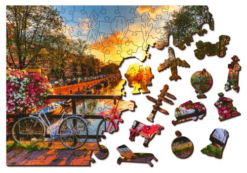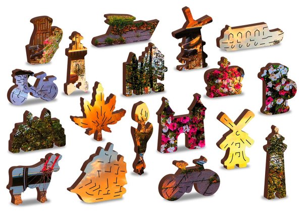 Upozornenie: Fotografie puzzle s dielikmi sú ilustratívne, môžu zobrazovať variant s odlišným počtom dielikov. Celkový počet dielikov je vždy uvedený v názve výrobku, výsledný rozmer obrázku a počet unikátne tvarovaných dielikov je uvedený v popise. Laserom vyrezávané drevené puzzle WOODEN CITY so svojimi špeciálne tvarovanými dielikmi je neskutočne zábavné. Časť dielikov je vyrobená v tvare zvierat, stavieb alebo predmetov, ktorých výsledný efekt umocňujú laserom zvýraznené detaily. Tieto dieliky môžu samostatne stáť ako drobné figúrky. Skladanie puzzle s rôznorodými dielikmi je ťažšie a predstavuje väčšiu výzvu, než skladanie klasického puzzle. Puzzle je navyše obojstranné, skladať môžete ako podľa obrázku (lícová strana), tak podľa tvaru (rubová strana so vzorom). Značka WOODEN CITY okrem unikátneho konceptu puzzle nezabúda na ekológiu, u týchto výrobkov preto nenájdete žiadne plastové obaly.