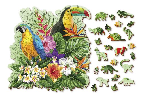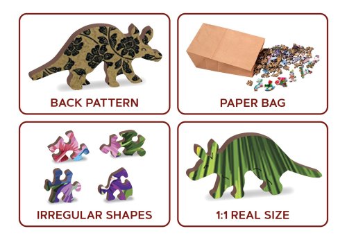 s unikátne tvarovanými dielikmi v tvare zvierat vyššia obtiažnosť pri menšom počte dielikov - skladanie puzzle s rôznotvarými dielikmi je náročnejšie hladké hrany bez triesok vďaka precíznemu laserovému spracovaniu vyrobené z pevnej drevovláknitej HDF dosky o sile 3-4mm vo vnútri balenia je samostatná predloha na skladanie EKO Friendly 100 % bez plastových obalov - puzzle je v papierovom sáčku vo vnútri papierovej krabičky vhodný darček pre akúkoľvek príležitosť