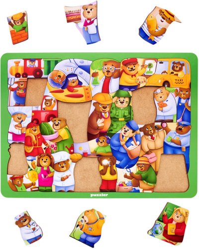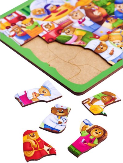 Vaše deti sa tak zoznámia s mnohými povolaniami ako napríklad záchranár, lekár alebo muzikant. S týmito kreatívnymi a vzdelávacími puzzle zažijú vaše deti zábavu a ešte sa naučia veľa nového. Drevené puzzle sú dôležité pre vývoj každého dieťaťa, zvyšujú aktivitu jeho mozgu, zlepšujú kognitívne schopnosti a schopnosti.