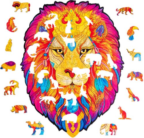 Laserom vyrezávané drevené puzzle PUZZLER s akvarelovým motívom má špeciálne tvarované dieliky. Časť dielikov je vyrobená v tvare zvierat a rastlín, ktorých výsledný efekt umocňujú laserom zvýraznené detaily. Tieto dieliky môžu samostatne stáť ako drobné figúrky. Skladanie puzzle s rôznorodými dielikmi je ťažšie a predstavuje väčšiu výzvu, než skladanie klasického puzzle.