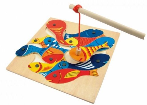 Drevený prútik s magnetom zaveseným na povrázku, na ktorý sa musia nachytať rybičky Hra rozvíja dieťa v dvoch fázach Ide o súťaživú hru, kto naloví pomocou magnetkov pripevnených na udičkách viac rybičiek Tiež vedie dieťa k premýšľaniu, kedy má za úlohu zložiť rybičky tak, aby do seba znovu zapadali