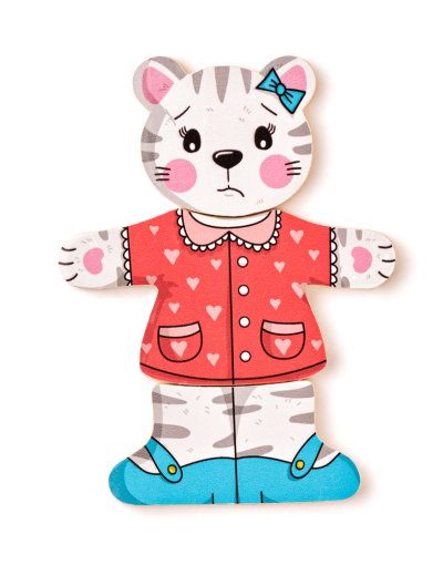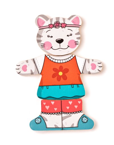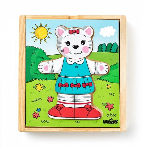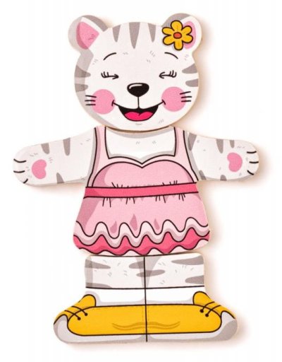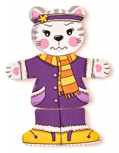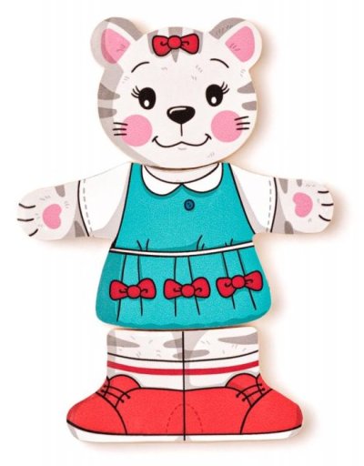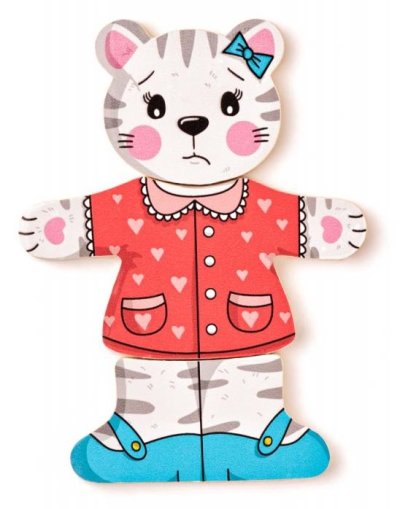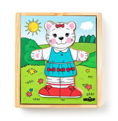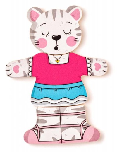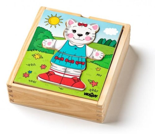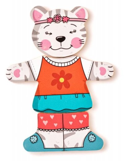 Deti tu majú možnosť si podľa vlastnej fantázie obliekať a meniť postavičku mačičky Majú k dispozícii tváre znázorňujúce rôzne nálady, telíčka a nožičky mačičky s rôznymi outfitmi Rozvijú fantáziu a schopnosť logického myslenia Balené v praktickej drevenej krabičke