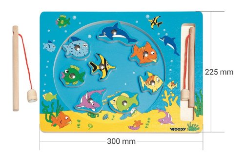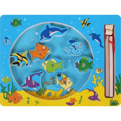 Farebné drevené rybičky majú v sebe kovový dielik, za ktorý ich ulovíte magnetickou udicou Hra je vhodná na precvičovanie motoriky a trpezlivosti