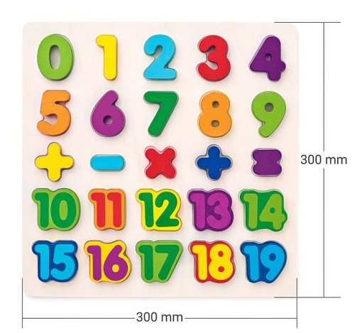 Dieťa vkladá číslice do správnych výsekov Môže skladať a precvičovať aj jednoduché matematické príklady Vhodné pre predškolákov