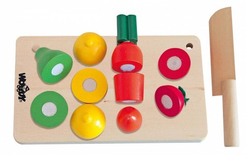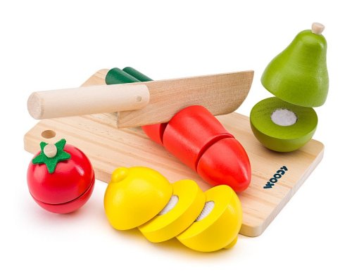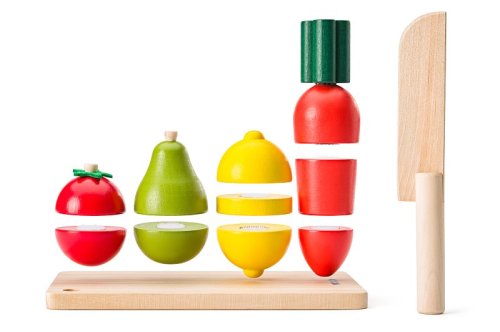 Krájanie na doske je hračka vybavená suchými zipsami, ktoré umožňujú skladať znova a znova "nakrájané" potraviny Ideálna hračka pre rozvoj motoriky a logického myslenia