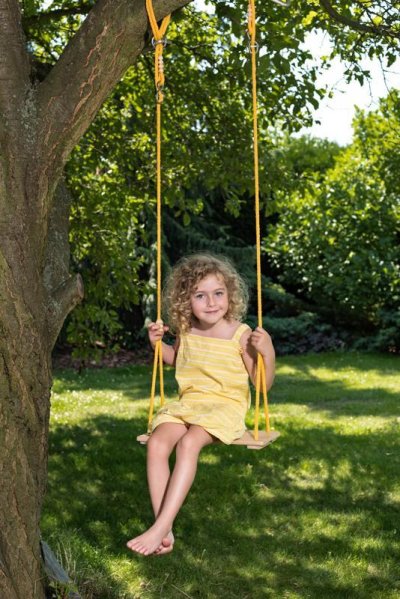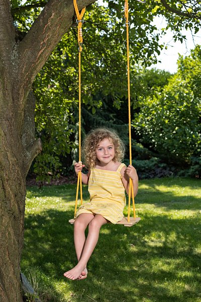 Klasická jednoduchá drevená hojdačka na zavesenie-doštička Hojdačka bez podpierok umožňuje väčším deťom viac pohybu, voľnosti a spôsobov hojdania