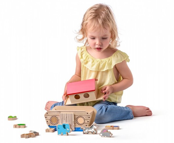Hračka pomáha rodičom predstaviť a rozprávať dieťaťu biblický príbeh o Noemovej arche Dieťa sa potom môže so zvieratkami hrať, vkladať ich dovnútra a von