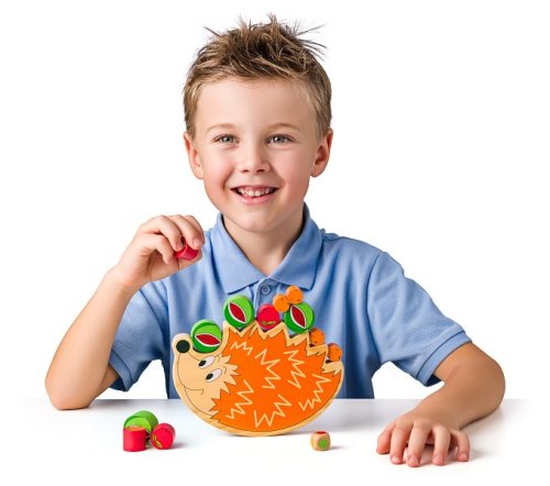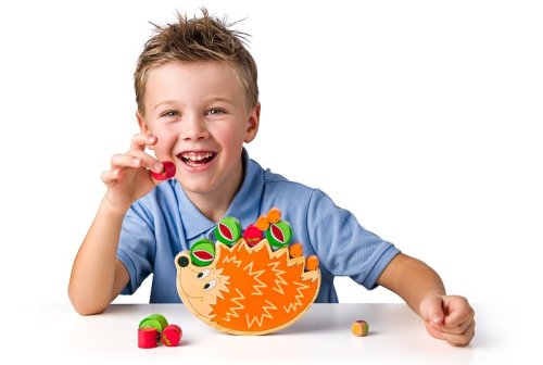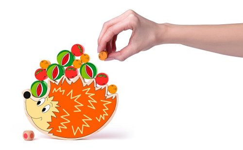 Hra a didaktická pomôcka v jednom Hráči hádže kockou, na ktorej stranách sú farebné bodky Farba hráči napovie, ktoré ovocie bude na ježka pokladať Úlohou hráča je položiť na ježka ovocie tak, aby sa ježko neprevážilo a ovocie zo svojho chrbta nevysypal
