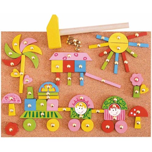 Deti dokážu z tejto stavebnice, pomocou kladivka a klinčekov, vytvoriť nekonečné variácie obrázkov plných fantázie Práca so stavebnicou podporuje predstavivosť, sústredenosť a presnú koordináciu pohybov