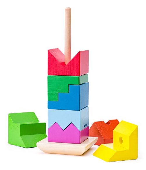 Veža sa skladá z rôznofarebných dielov, ktoré navyše majú aj rozdielne tvary Pri správnom zložení do seba zapadnú a vytvoria vežu Rozvijú predstavivosť a logické myslenie