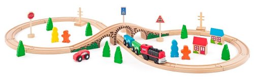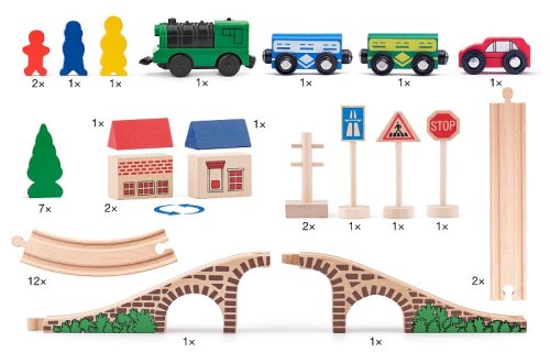 Táto vláčikodráha je vhodná ako prvá vláčikodráha pre vaše dieťa Obsahuje koľaje, most, vlak s dvoma vagónmi, autíčko, značky, postavičky a stromy Tento základný set je možné rozširovať veľkým množstvom príslušenstva Obsahuje elektrickú mašinku so spiatočkou Batéria 1x 1,5V AA