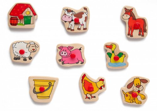 Kombinácia pečiatok a puzzle Na spodnej strane každého zvieratka je gumové tlačítko Na ploche tohto výrobku pre nich nájdete farebný vankúšik Deti si môžu vyfarbovať vytlačené zvieratká a skladať z nich celé obrázkové kompozície