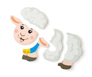 Masívne puzzle pre najmenšie deti Zložené z piatich veľkých kúskov, ktoré sa dajú ľahko uchopiť Na základni hracej dosky vytlačená čiernobiela kresba Tá uľahčí orientáciu a správne poskladanie obrázku Design pochádza z dielne českého výtvarníka