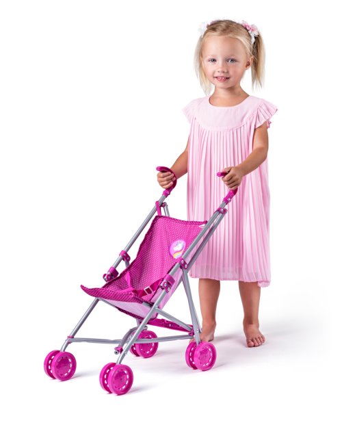 Dizajn kočíka s jednorožcom reaguje na aktuálny módny trend Golfky sú vyrobené z kombinácie materiálov látka, kov a plast Veľmi jednoduchý mechanizmus umožňuje skladanie a opätovné rozkladanie golfiek Táto hračka je odporúčaná pre dievčatká, ktoré sa rady hrajú a vžívajú sa do role dospelých mamičiek Hra podporuje predstavivosť, rozvíja sociálne cítenie, pamäť a hrubosť