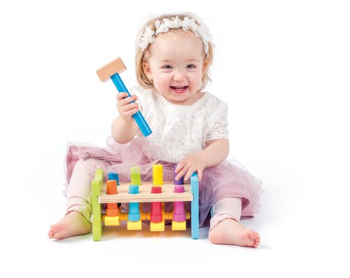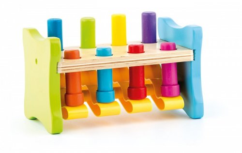 Nový vylepšený variant klasickej drevenej zatĺkačky Tentoraz v kombinácii drevo/plast Okrem novo použitej kombinácie materiálu a farieb je tu novinkou hlavne systém, na ktorom táto zatĺkačka funguje Jej kolíky sú v pároch proti sebe pripevnené na plastovú "kolísku" Zatlčením kolíka na jednej strane sa dostane druhý kolík automaticky hore a je opäť pripravený na