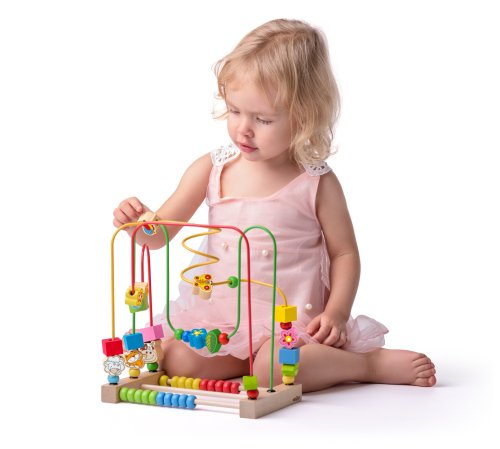Motorická hračka pre najmenších Dieťa posúva korálky po špirálach a ohyboch silnej drôtenej konštrukcie Rozvíja jemnú motoriku