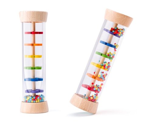 Preklápaním valca prepadajú dúhové korálky cez kaskádu prekážok Hrkajú a vytvárajú pre dieťa zábavný zážitok