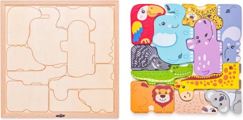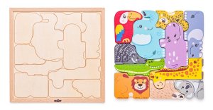 Drevené puzzle s africkými zvieratkami pre deti vhodné aj na samostatnú hru so zvieratkami!