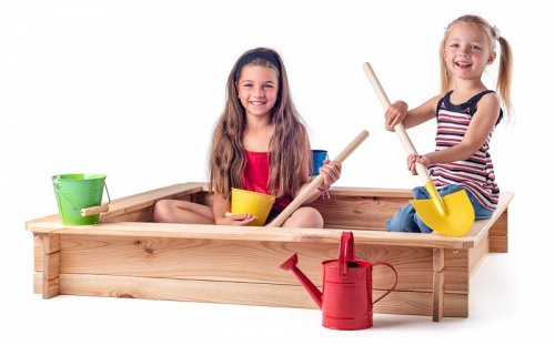 Pieskovisko natur-štvorcový tvar. Pieskovisko je vybavené sieťou, ktorá chráni piesok pred zvieratami, prachom atď. v čase, keď sa v ňom deti nehrajú. Sieť je vybavená úchytmi a korpus pieskoviska háčiky. Balenie obsahuje skrutky a jednotlivé diely dosiek. Rozmer: 120 cm x 120 cm x 20 cm ( výška), vnútorný rozmer pieskoviska: 96 cm x 96 cm Vek: 3+