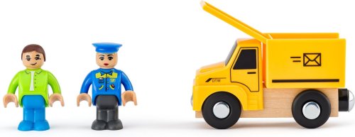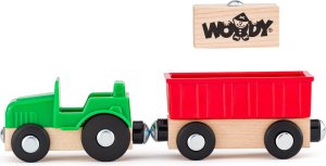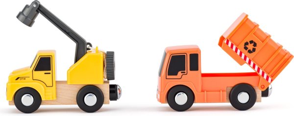 4 autíčka, 1 vozík, 1 drevená kocka (náklad), 2 plastové figúrky vodičov traktor, bager, smetiarske auto, poštársky automobil možnosť pripojenia pomocou magnetov